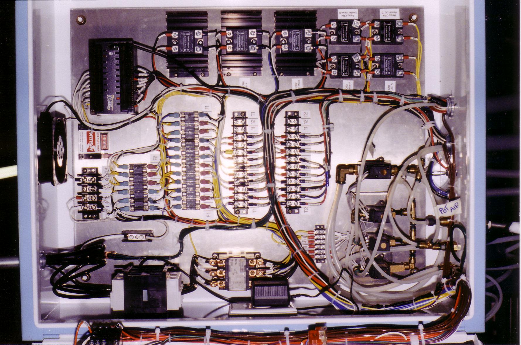 how the wiring has been left exposed on the back of this panel. The color-coding